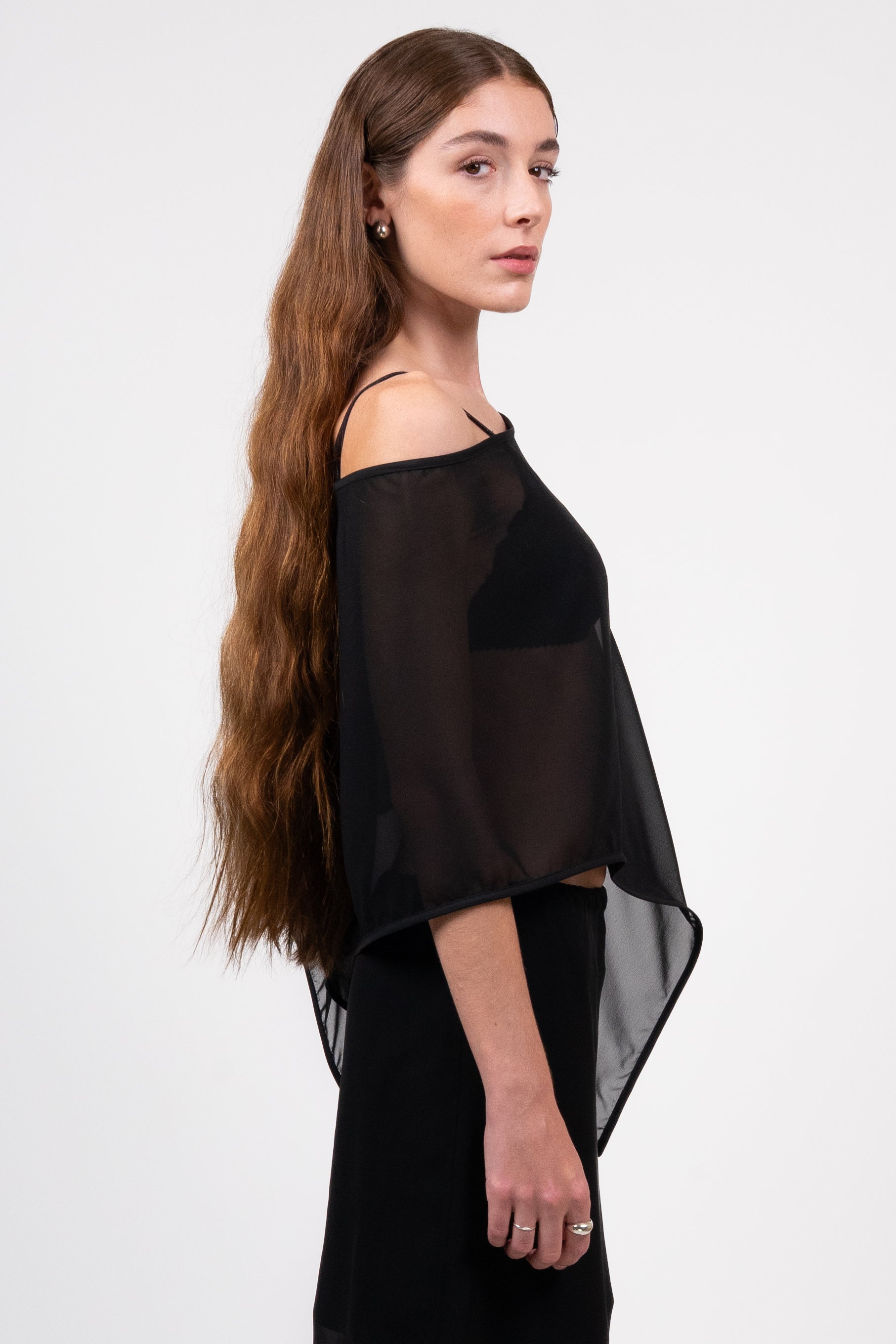 Perfect layering piece for all year round. Reclaimed chiffon and cotton bias tape.
